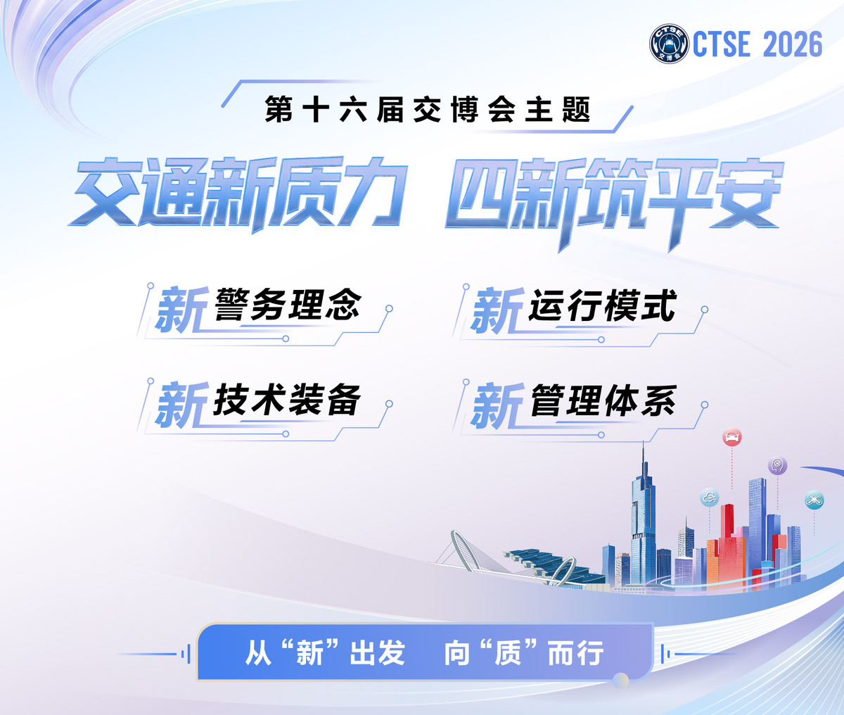 第十六届中国国际道路交通安全产品博览会(简称“交博会”)将于2026年4月22日至24日,在南京国际博览中心举办。本届交博会以“交通新质力四新筑平安”为主题,展览面积达4万平方米,精心规划了智慧交通创新成果展区、智慧交管数字化展区以及交通执法与安全治理展区三大核心...