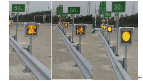 | 示路况 | 道路诱导单元亮化公路可视条件,引导过往车辆依次通过管制路段。 | |