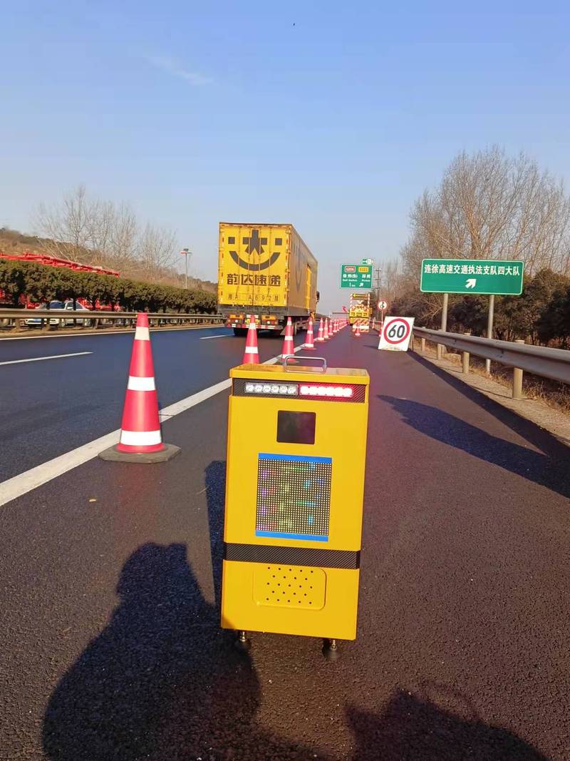 必安仕智能防闯入主动预警装置实时跟踪封闭作业区域前方300米范围内所有行驶车辆轨迹,采用二级报警机制。在远距离报警区域,当监控的车辆目标出现车速过快,S型行驶,频繁换道等驾驶行为,触发一级报警,开启高音喇叭报警声,提醒该车司机注意前方施工危险。在近距离报警区域,当监控到速度大于35公里/小时的车辆,超过一个时间阈值(可自行设置)会撞向封闭作业区域,触发二级报警,向作业人员佩戴的智能手环发出振动信号